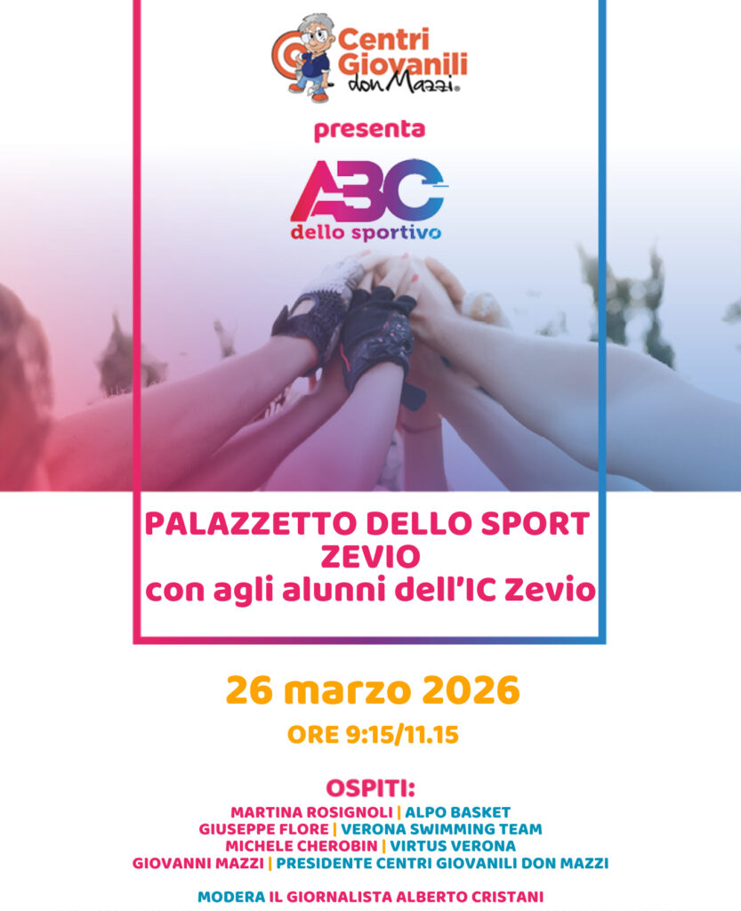 Giovedì 26 marzo il progetto ABC dello Sportivo farà tappa a Zevio per un nuovo appuntamento dedicato ai giovani. L’evento si svolgerà in compagnia degli studenti e degli insegnanti dell’Istituto Comprensivo Statale di Zevio, all’interno del Palazzetto dello Sport, per una mattinata all’insegna dei valori autentici dello sport.